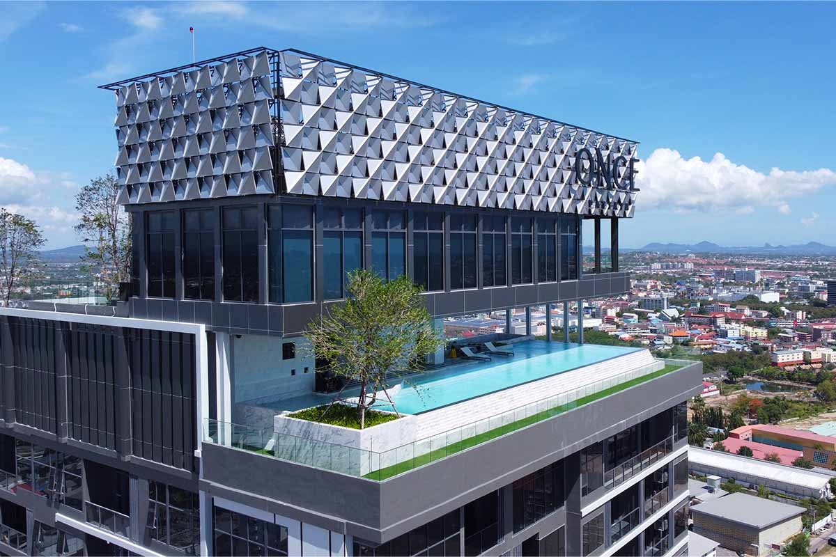 Once Pattaya: Completed in 2023, this luxury 32-story mixed-use condo in North Pattaya offers 427 units. Enjoy a spectacular rooftop infinity pool, sky gym, a variety of bars, co-working spaces, and panoramic city/sea views. Its prime location near Terminal 21 makes it ideal for both luxurious living and strong investment.